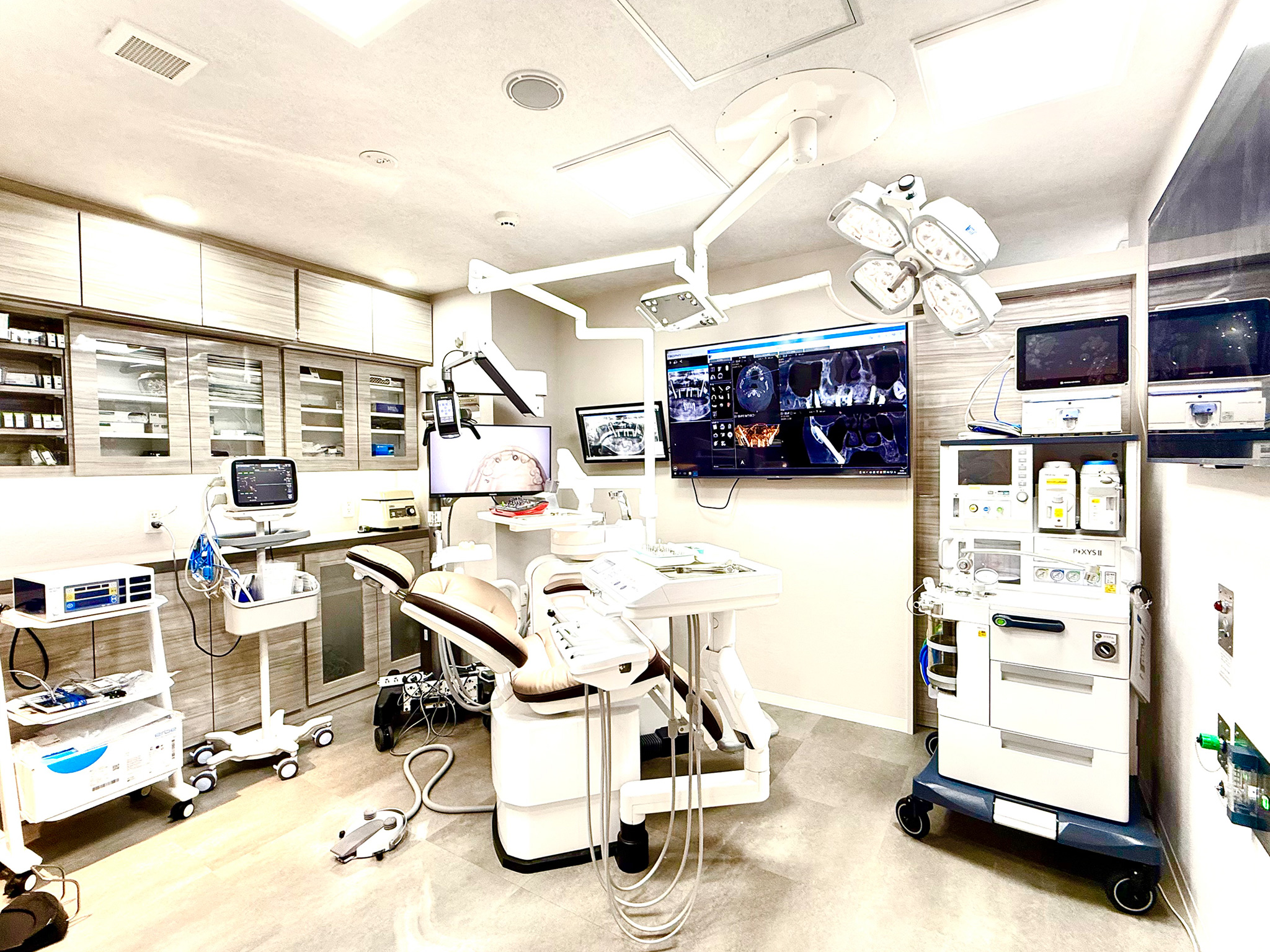 通常のインプラント治療は勿論のこと、切らないインプラント手術。抜歯即時インプラント手術。オールオン4。サイナスリフト手術。チタンメッシュを使用した増骨手術。抜歯即時と同時サイナスリフト手術。ガイデッドサージェリー。ザイゴマインプラント。歯肉移植手術を併用した前歯部審美領域のインプラント手術。うとうとした状態にする静脈内鎮静、完全に眠った状態にする全身麻酔。1Dayインプラントなど、あらゆるインプラント治療の全てに対応しております。