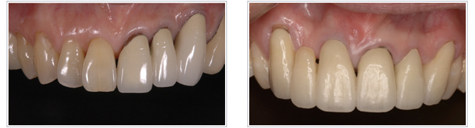 ②歯茎が痩せている方に普通のインプラント治療をすると、最終的に入る人工歯は長い歯になってしまい、笑った時に上唇が上がると歯茎が痩せている分だけ長い歯が入っている仕上がりになってしまいますから審美的な問題が生じます。