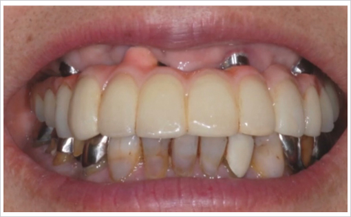 オールオン4であれば、人工歯と人工歯肉が一体式になっていますから、歯肉も歯列も綺麗な見た目に改善できるわけです。